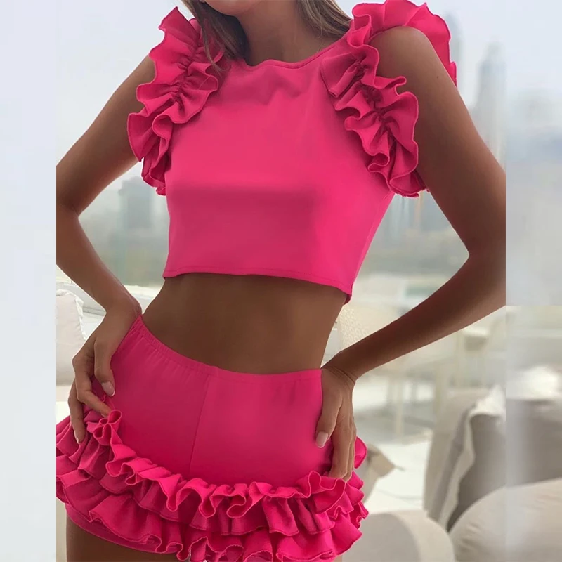 Promo In-X Sexy o neck ruffles bikini set High waist swimsuit women Brazilian bikini Push up swimwear fem